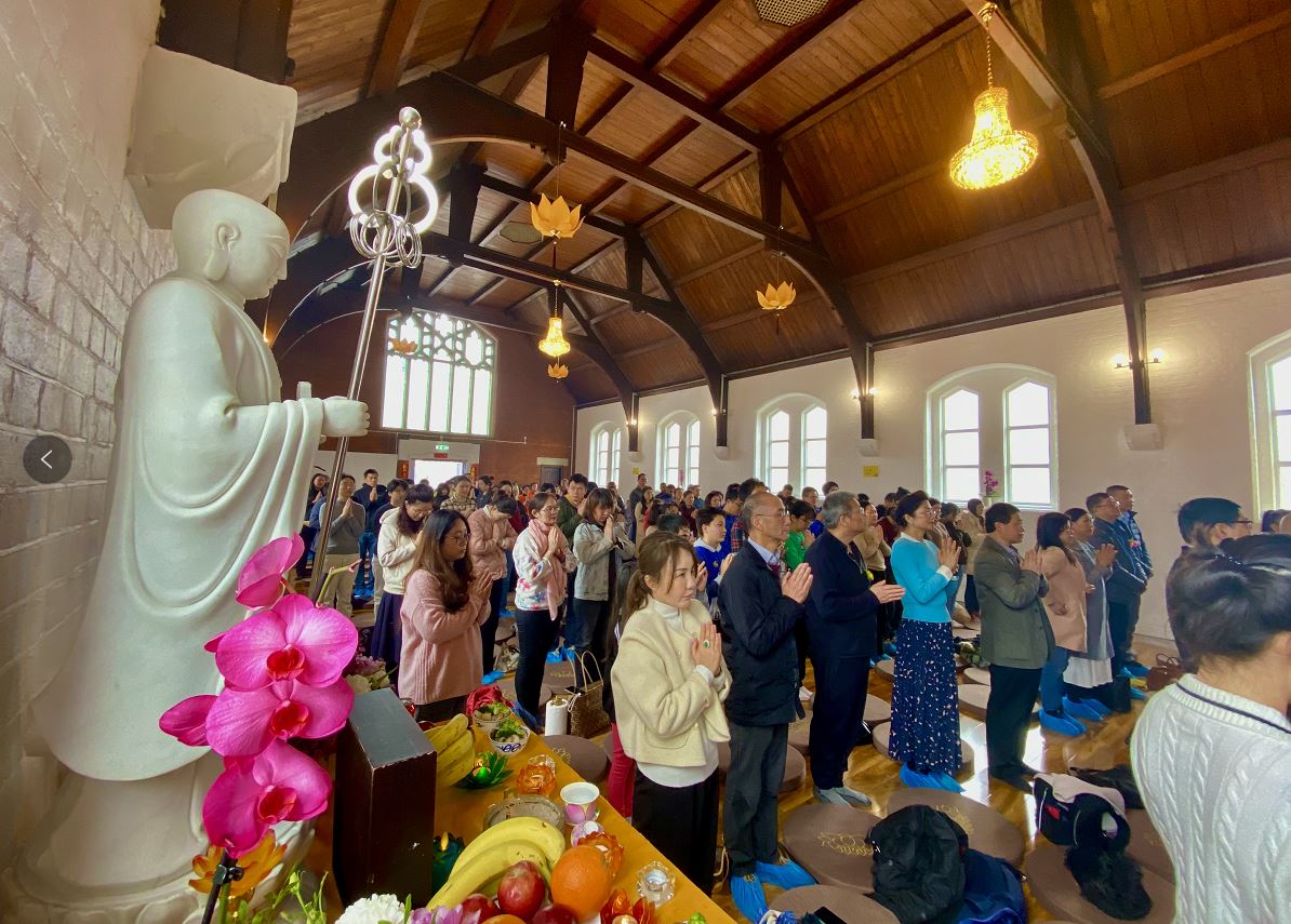 下午妙江大和尚为大众开示,农历二月初八适逢释迦摩尼佛出家纪念日,择此良日举办洒净奠基仪式,希望清凉讲堂续佛慧命,传播佛陀智慧,引领更多英国及欧洲的中西方人士亲近佛法。佛法发源于印度,生根于中国,传播于世界,是中华文化的重要组成部分之一,是吉祥与和平的象征,是佛陀留给世人的功德福田。此次清凉讲堂洒净大典不仅是英国佛教信众的一次盛会,也是弘扬佛陀慈悲济世的理念和祈愿世界和平的机缘。仪式的最后,妙江大和尚为几十名大众正授三皈五戒,并慈悲开示受戒之内涵。