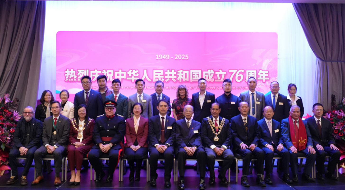 中国驻英国大使馆公使衔参赞兼总领事江雷代表郑泽光大使和使馆送来问候和祝福。她回顾新中国成立76年来伟大成就,表示中国共产党团结带领中国人民书写了人类发展史上的伟大奇迹,中国式现代化道路越走越宽广。中国隆重纪念中国人民抗日战争暨世界反法西斯战争胜利80周年,坚定不移地走和平发展道路,相继提出全球发展倡议、全球安全倡议、全球文明倡议、全球治理倡议,为世界发展贡献中国智慧和中国方案。在习近平主席和斯塔默首相的战略引领下,中英关系呈现积极改善和发展的良好势头,合作成果逐步显现。她肯定中部地区侨胞所做贡献,鼓励大家继续担当中国发展的积极参与者、中华文化的主动传播者、和谐侨社的有力建设者和中英友好的坚定促进者。